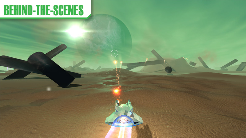 | I added a weapon system for this new game idea. I'm considering making this a racing-battle-arena style game. Though, I'm not sure how to handle the computer AI or the multiplayer aspects yet. I already love the controls and the overall feeling. |